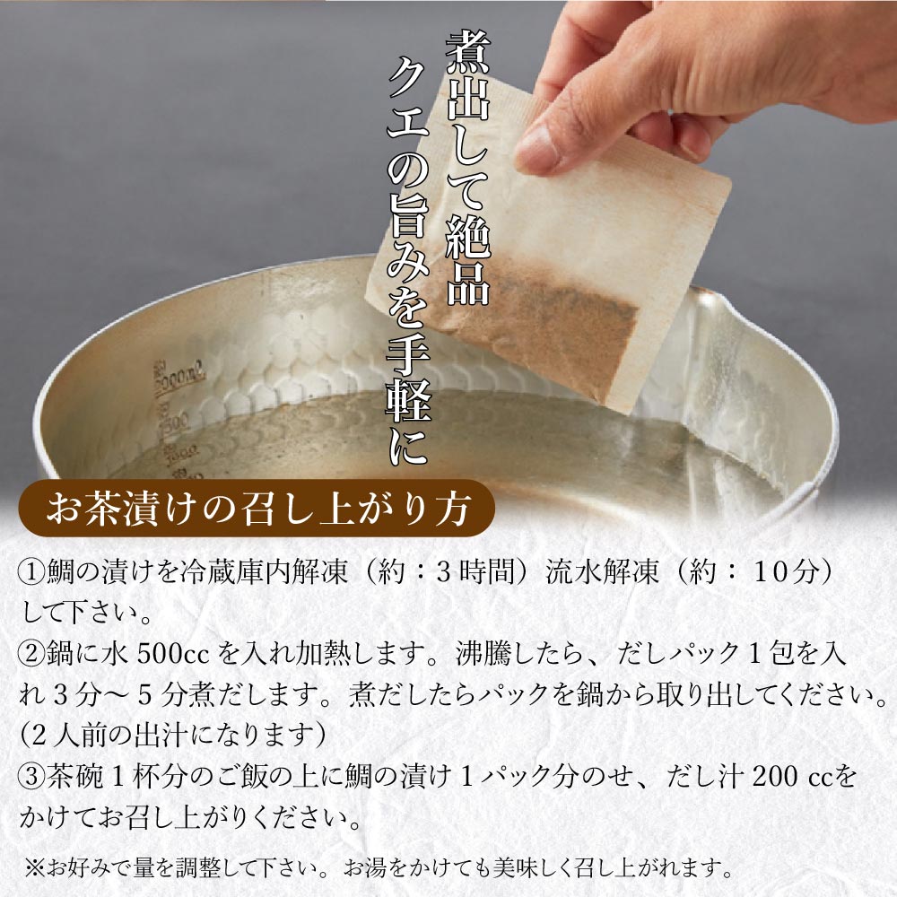 【送料無料】本格だしで味わう真鯛茶漬け4食入り 7種ブレンドだしパック付き 鯛茶漬けセット 鯛茶 ギフト 刺身茶漬け 冷凍 だし茶漬け 海鮮茶漬け 長崎産 真鯛 詰め合わせ